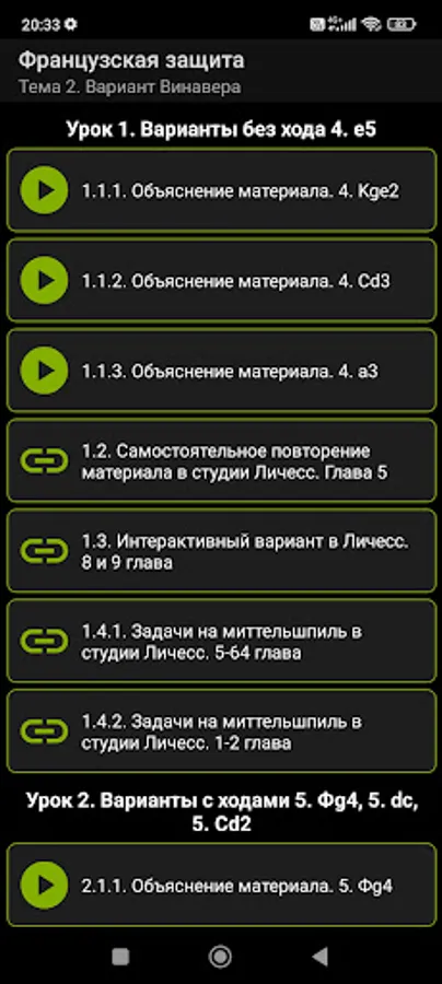 This application is designed to learn the French Defense (1. e4 e6) with black pieces.