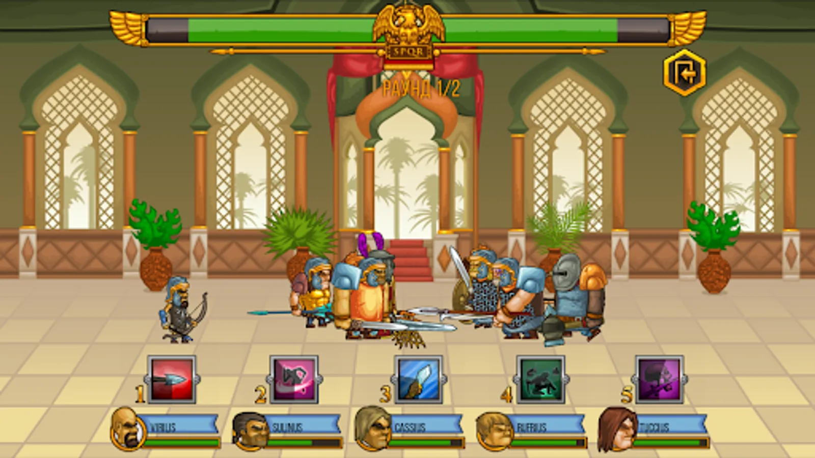 - 5 boss battles (aside strategy and tactics, you will need epic swords, pro gladiators, and crit hits, to win)