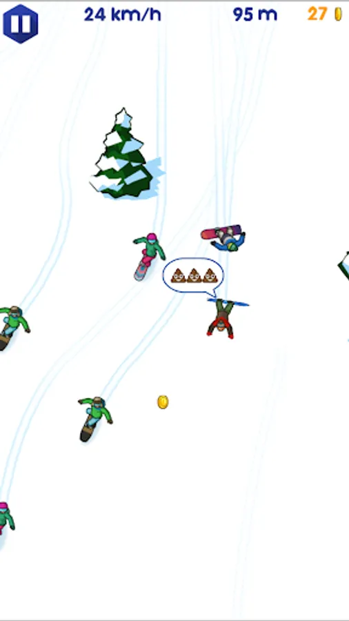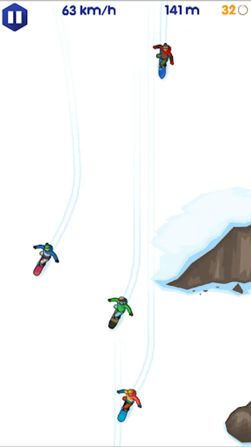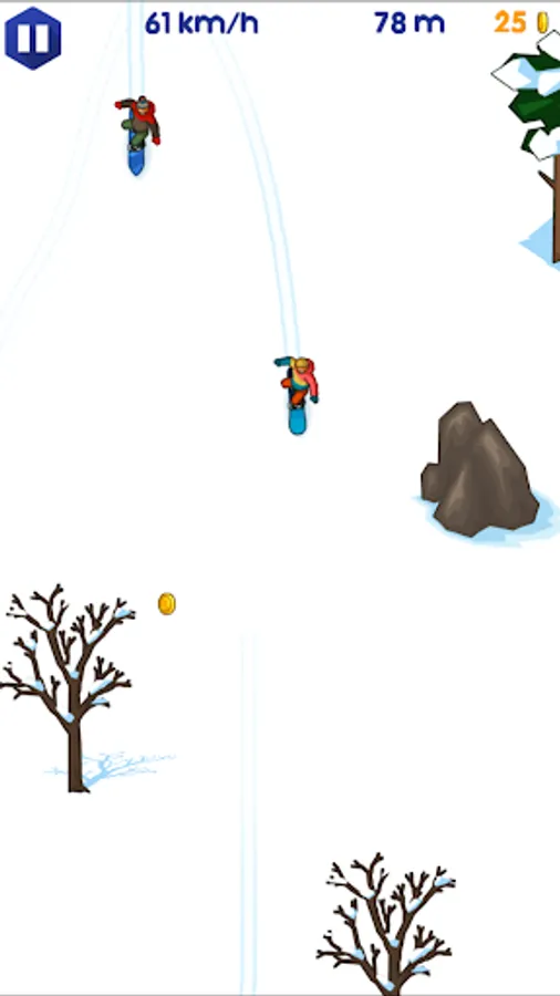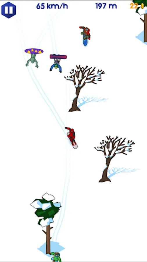 This is an extreme freeride snowboarding action! Avoid trees, stones and other riders. Jump from the cliffs. Catch the magic mushroom to rule the slope!