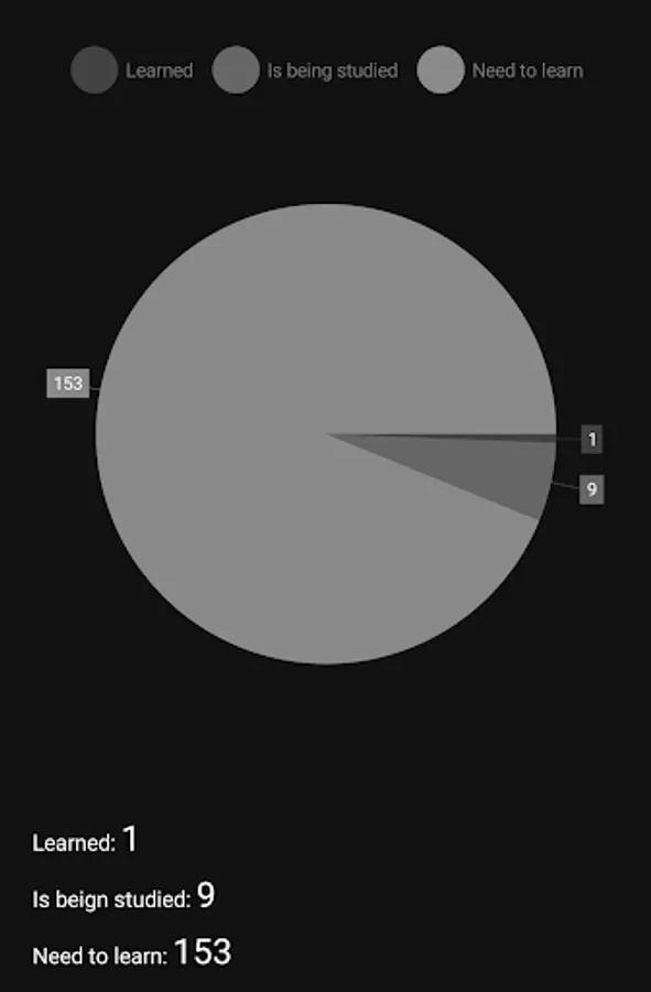 Track the progress in a special section, where the graph in a convenient form shows how many verbs you have already learned, and how much remains to be studied!