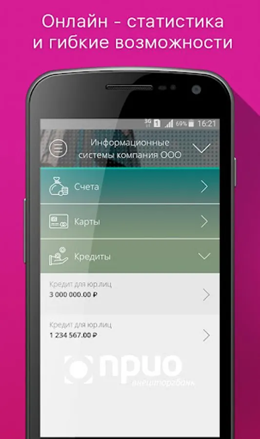 Mobile application "PRIO-Business" for legal entities and individual entrepreneurs on the Prio-Vneshtorgbank (PAO) will allow you to: