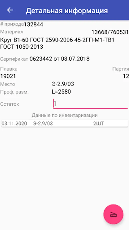 The program is designed to enter data into the IS "Cascade" using a data collection terminal