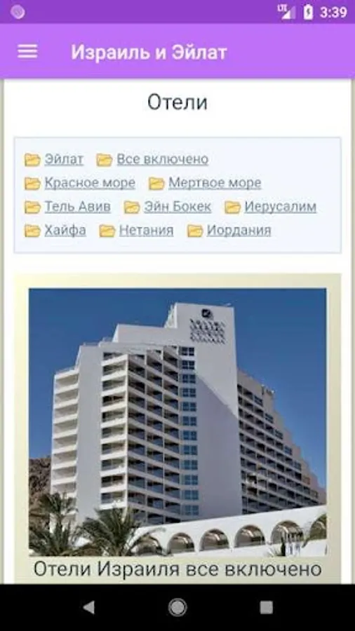 The application "Israel and Eilat" contains a lot of necessary information about cities, hotels and attractions of Israel.