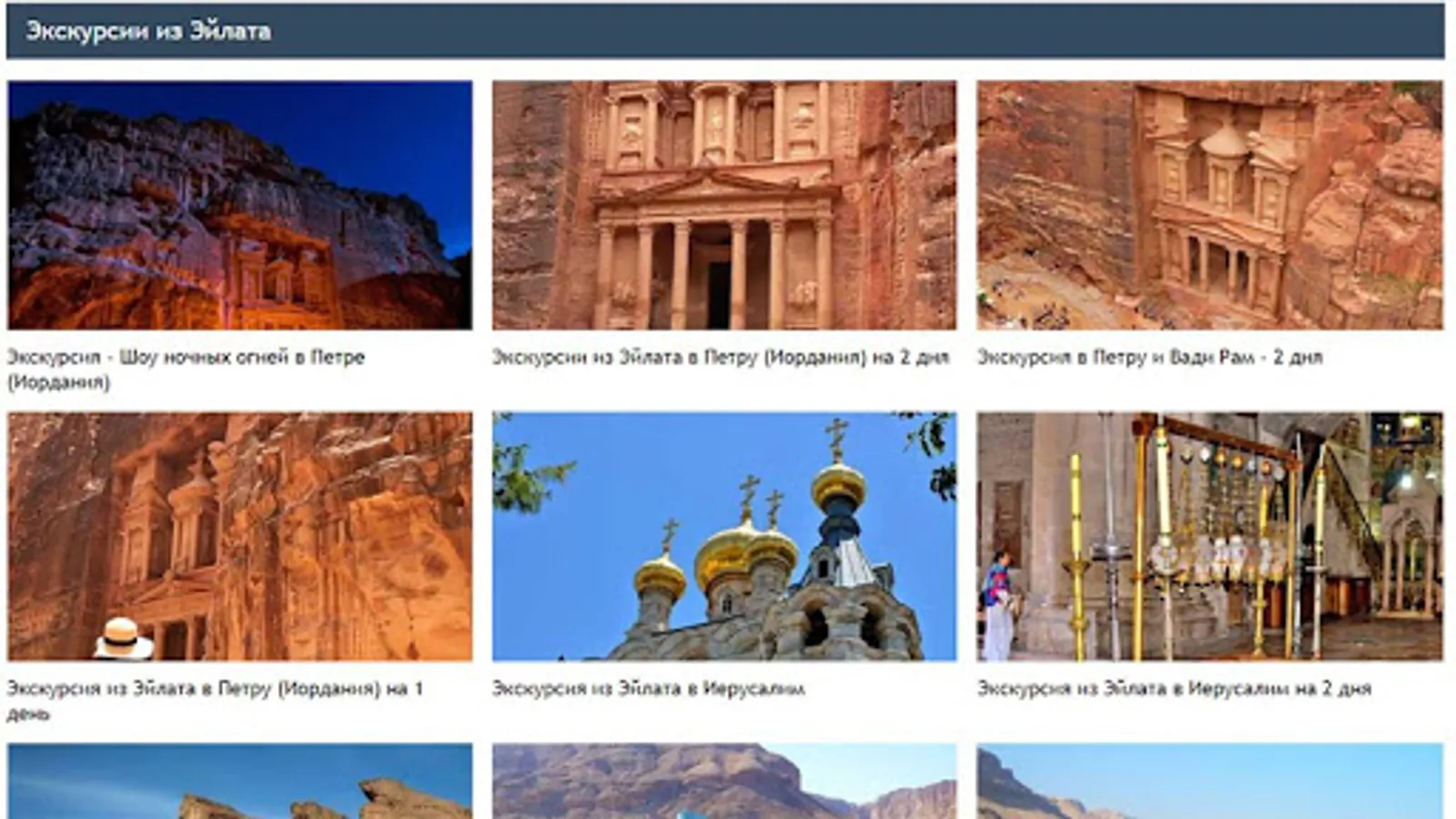 Excursions from Eilat to Petra, Wadi Rum, Jerusalem, Timna Park, Red Canyon, to the Dead Sea, to the Masada fortress. Excursions in Israel, Jordan and Egypt.