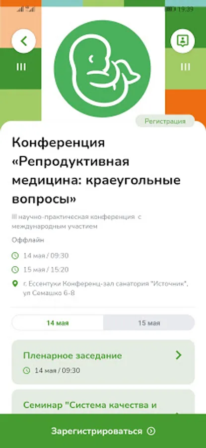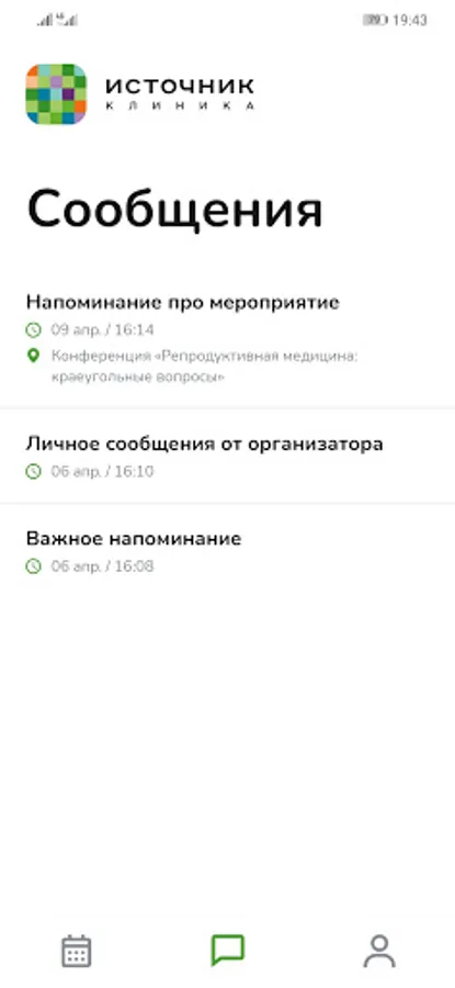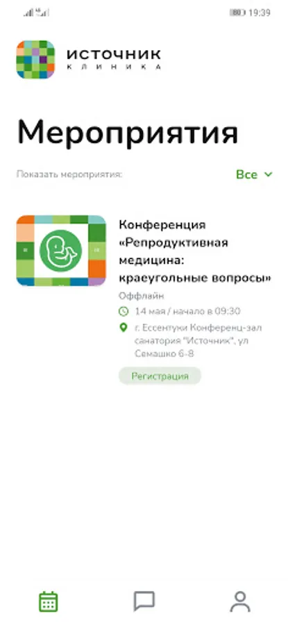 Application for viewing and registering for the events of the clinic "Istochnik"