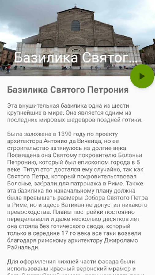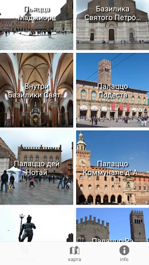 The oldest university in Europe is precisely in Bologna, which today is the capital of the self-proclaimed student of Italy. In the information the application contains all the necessary information about visiting museums and trip to the Sanctuary of the Madonna of Saint Luke.