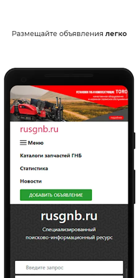 Place ads in other categories from your phone: vacancies, technical documentation, training centers, GNB services, rent.