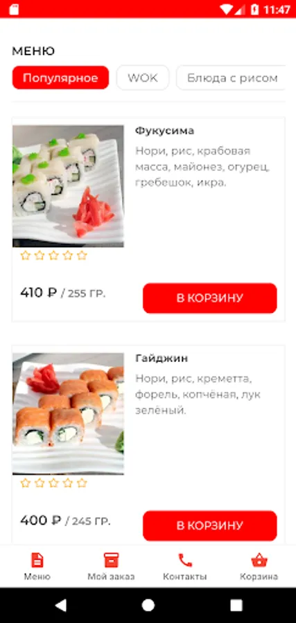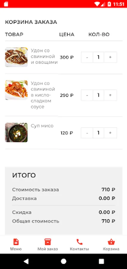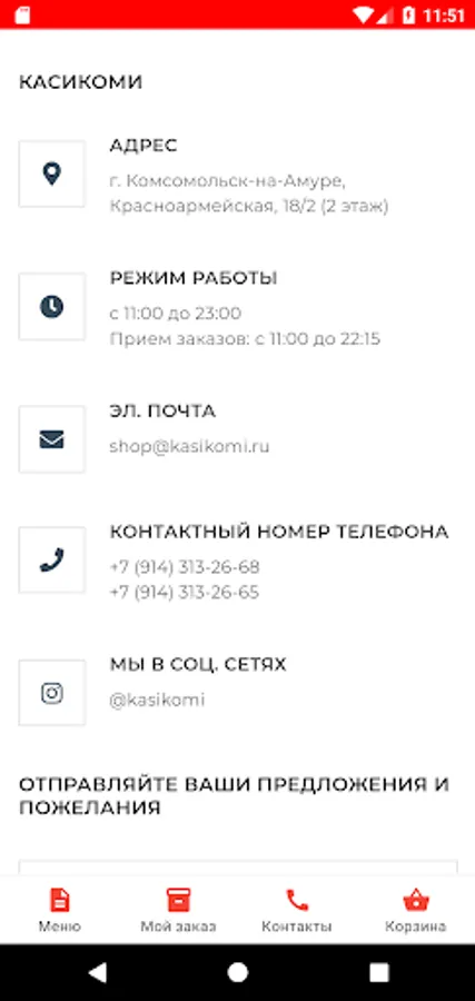 The official mobile application provides an opportunity to place an order for delivery or pickup at the Kasikomi cafe in Komsomolsk-on-Amur