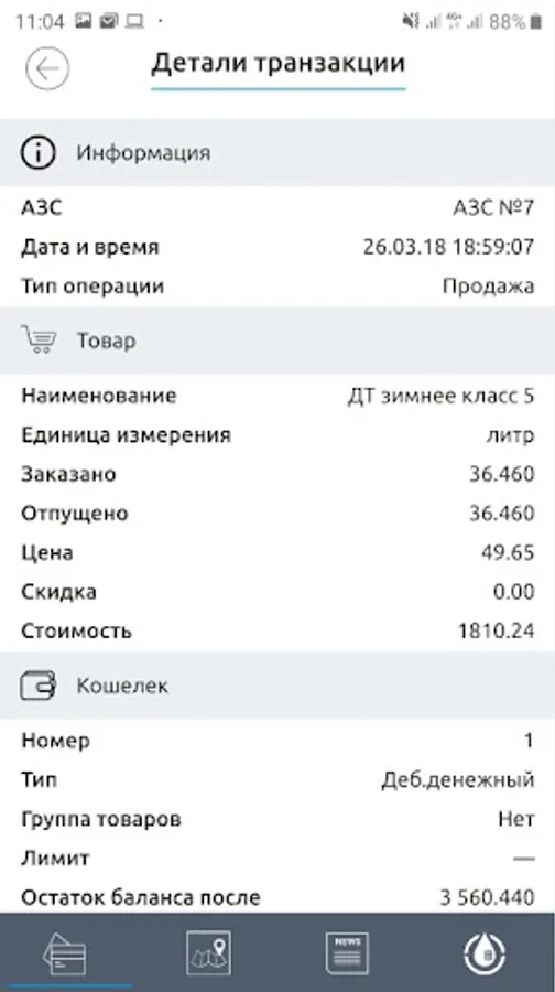 • Viewing data on operations (replenishment of fuel cards, payment for purchases with details to individual check items, refunds for ordered but not received fuel;