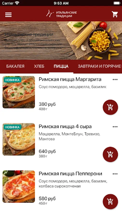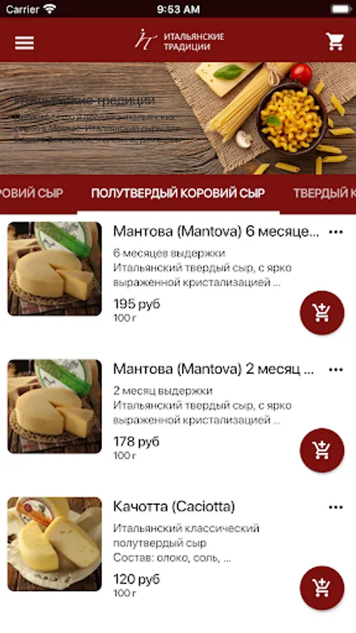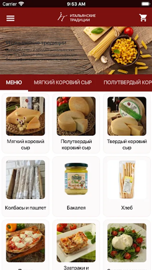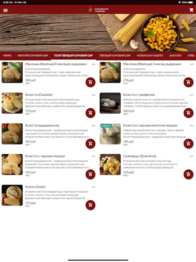 An application for arranging the delivery of cheeses, sausages, pizza and other goods of own production from the best Russian raw materials of the Cheese Factory Italian Traditions.