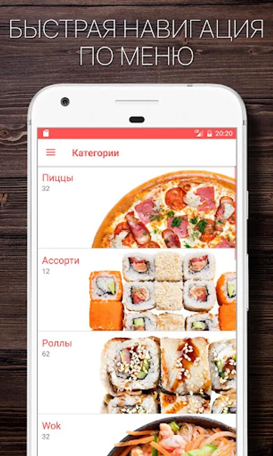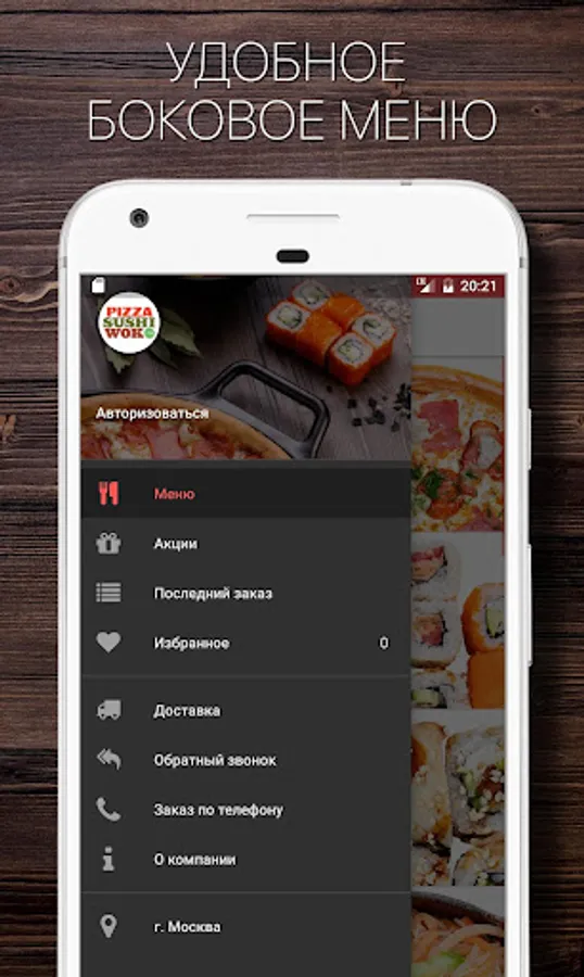 With the app PIZZASUSHIWOK.RU, delicious food is always at hand: