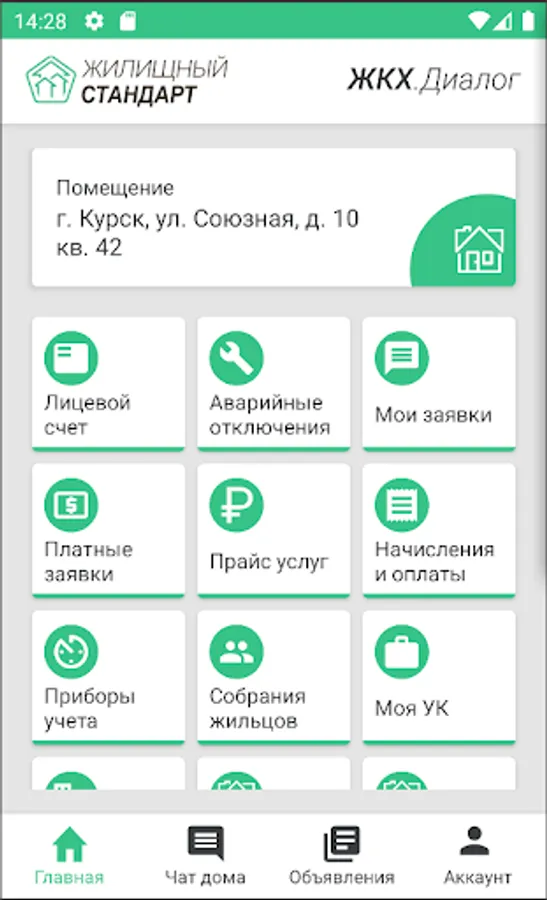 The application is designed for convenient interaction of residents with their Management Company and public authorities. The possibilities available to the user of the application depend on what functionality of the Housing Standard ACS is used by the Management Company. The possibility of sending appeals to state authorities is coordinated with the Administration of the settlement.