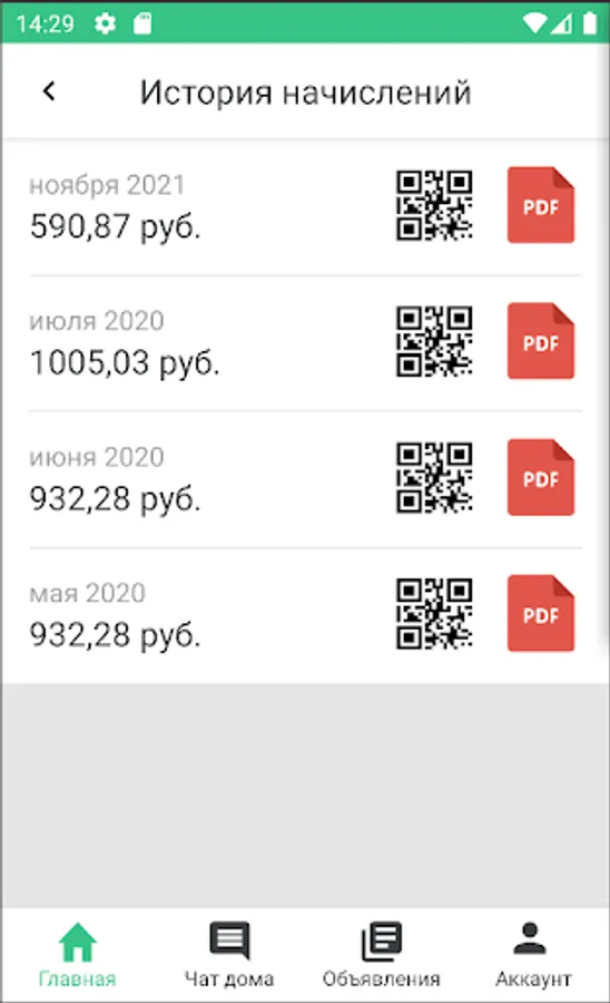 Pay all bills from your phone. View the history of accruals and payments on your personal account.