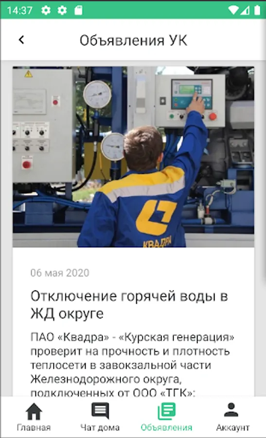 Thanks to Housing and Public Utilities Dialog, you will not forget to enter meter readings on time, receive timely notifications about an emergency shutdown, a change in the status of an application, or the start of electronic voting.