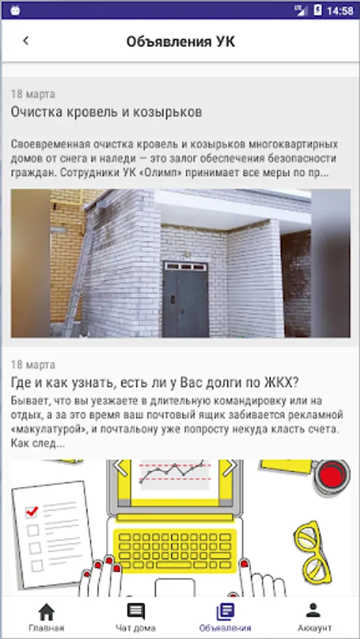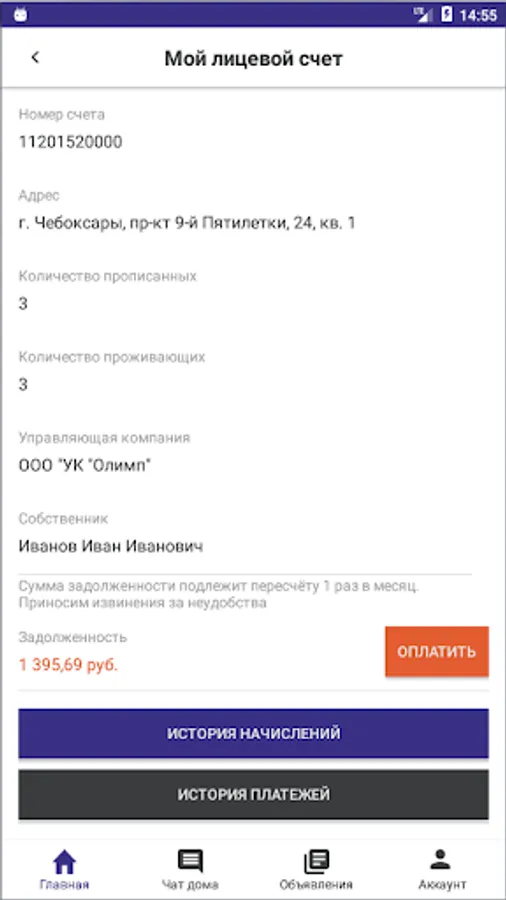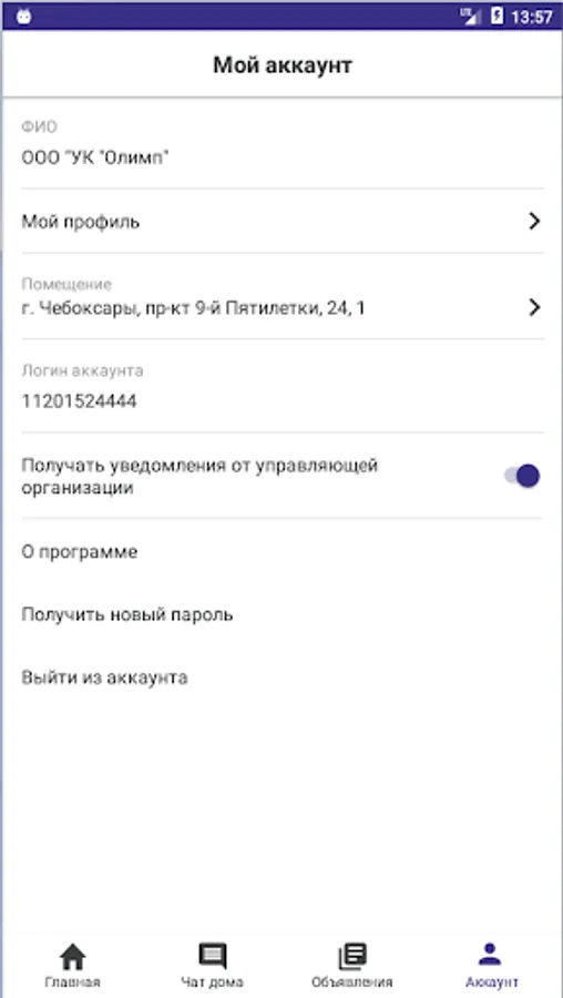 The application is designed for convenient interaction of residents with their Management Company. Opportunities available to the user of the application: transmission of meter readings, drawing up applications and appeals, payment for utilities and housing services.