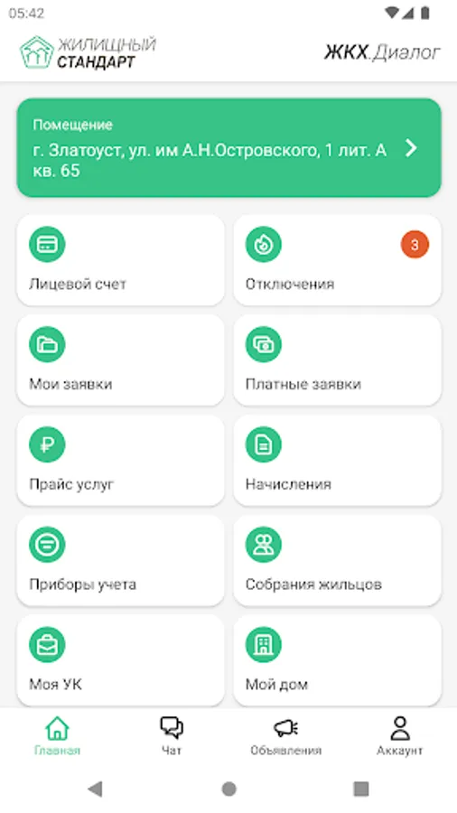 The application is designed for convenient interaction of residents with their Management Company and public authorities. The possibilities available to the user of the application depend on what functionality of the Housing Standard ACS is used by the Management Company. The possibility of sending appeals to state authorities is coordinated with the Administration of the settlement.