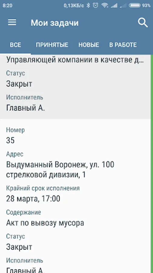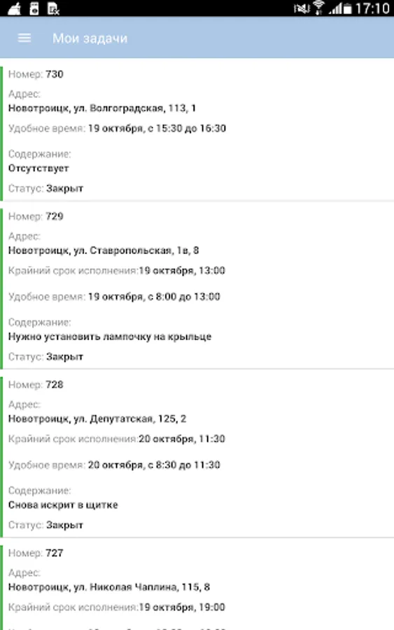Thanks to the push-notifications employees who use mobile application is always up to date with all the new outages and assigned tasks. The application allows you to report on the fact of executed tasks, including photofixing result, voice memos; leave text comments to any problems and outages.