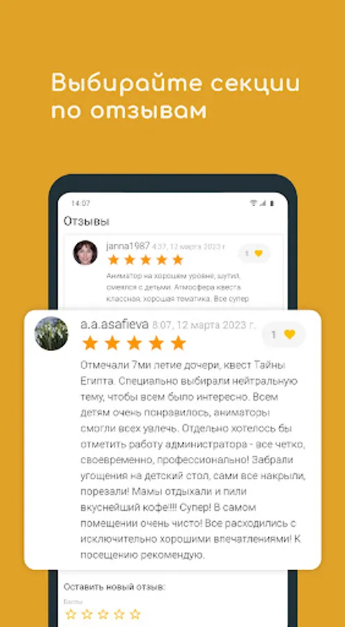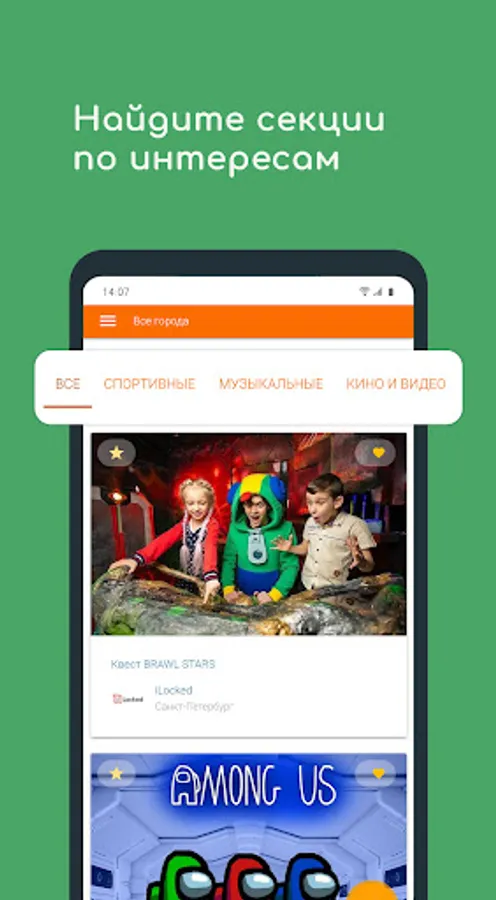 We collect trusted children's organizations with a variety of programs to make it easier for a child to reach their potential. You can choose and pay for courses, events, sections, quizzes right in the app!