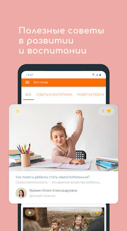 In the application, you can see the latest news of children's educational and entertainment organizations. And also - read materials from qualified specialists: advice on education, analysis of psychological problems, school difficulties and exams, and much more.
