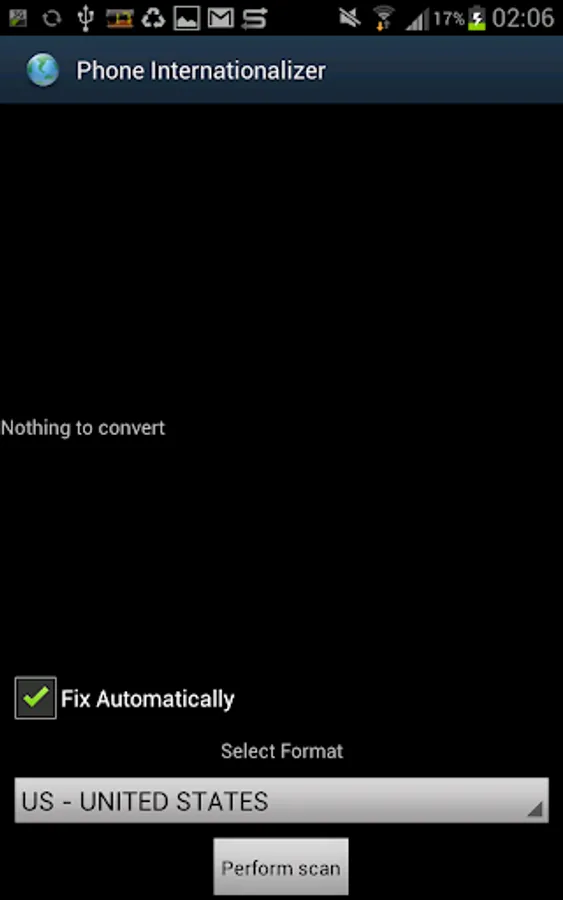 This app will convert your locally-formatted phone numbers to international format. You will be able to take a preview before conversion occurs.