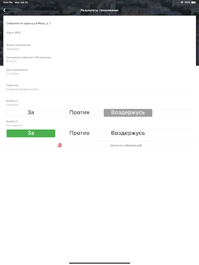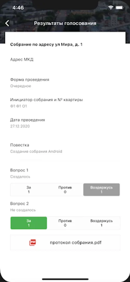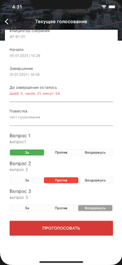 The application allows you to initiate, participate and view the results of voting for the owners of MKD in the city of Izhevsk.