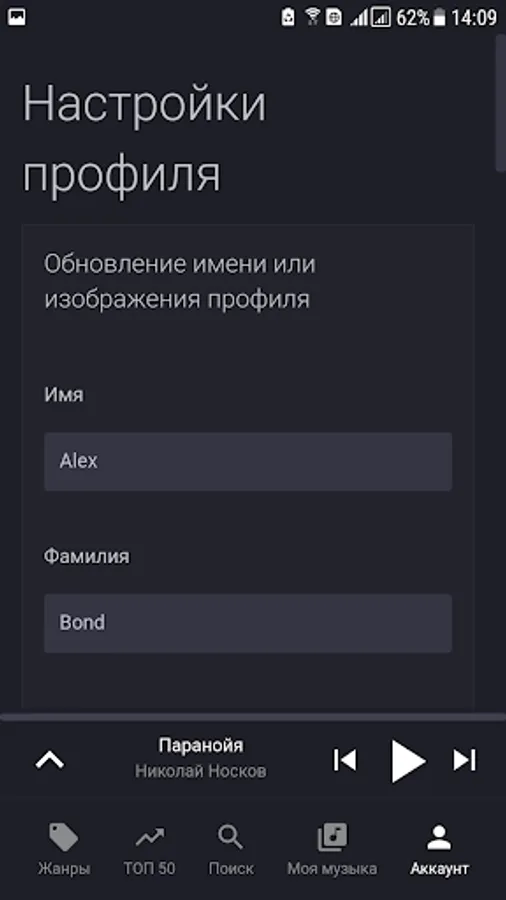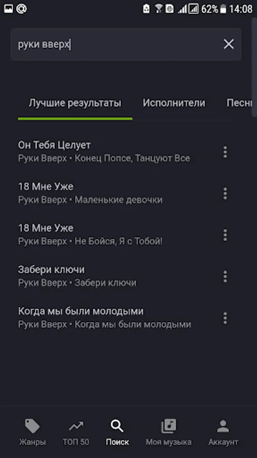 On the search page, you can find your favorite songs and artists. Private use music service, not for a wide range of people.