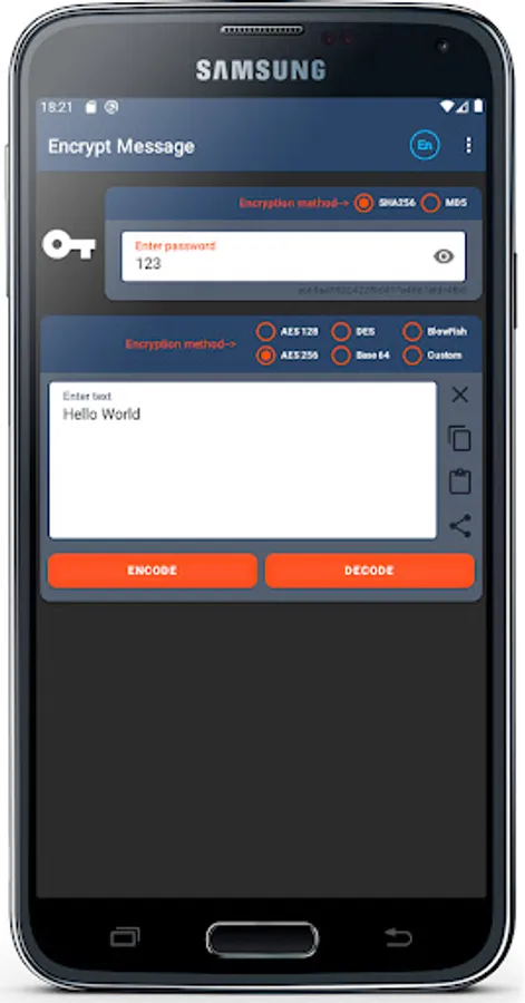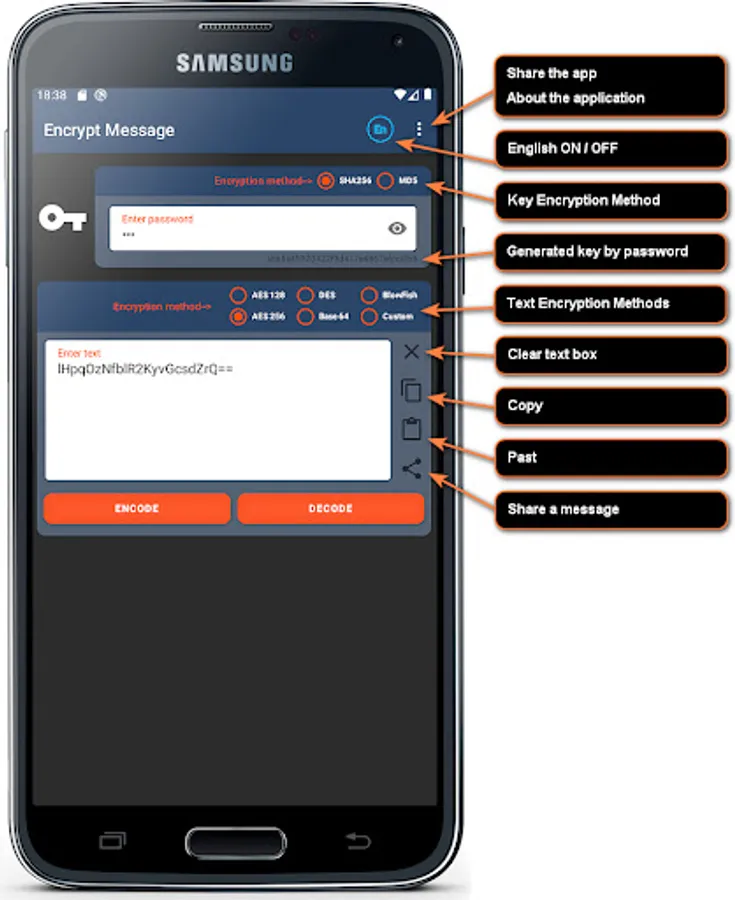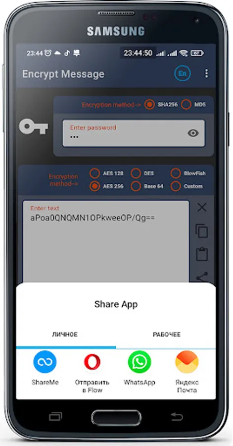 Encrypt your messages, passwords, SMS and other important information to protect them. For example, you can encrypt your passport data and send it to WhatsApp, Telegram, SMS or Gmail, or any other messaging application and it will be safe. No one will decrypt your message without this application, your password and encryption combination.