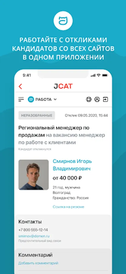 Post vacancies, get feedback from all sites and work with candidates directly from your phone.
