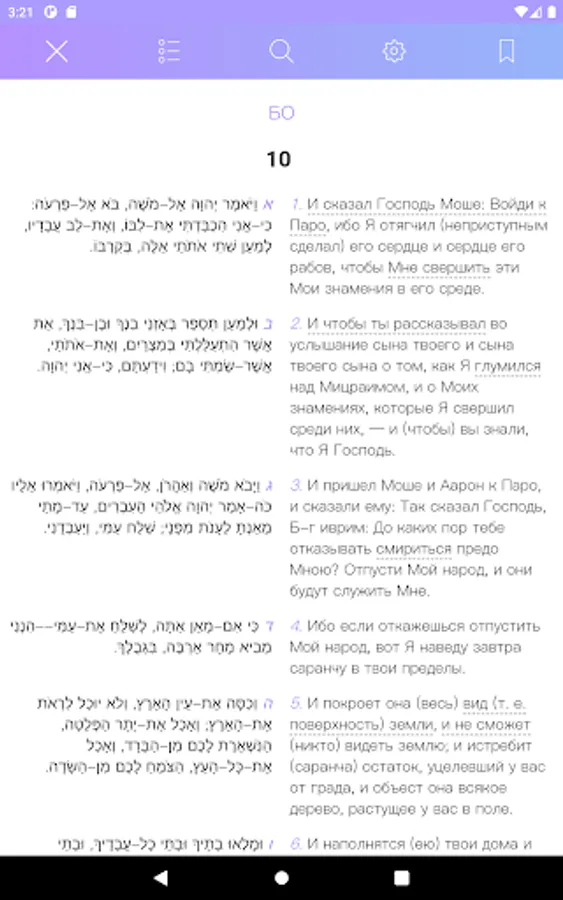 The Tanakh application was created by the Torah Mitzion organization and the Toldot.ru website and is distributed free of charge. The text of the Torah is taken with the permission of Mossad aRav Kook, translation of RASHI comments by Frima Gurfinkel.