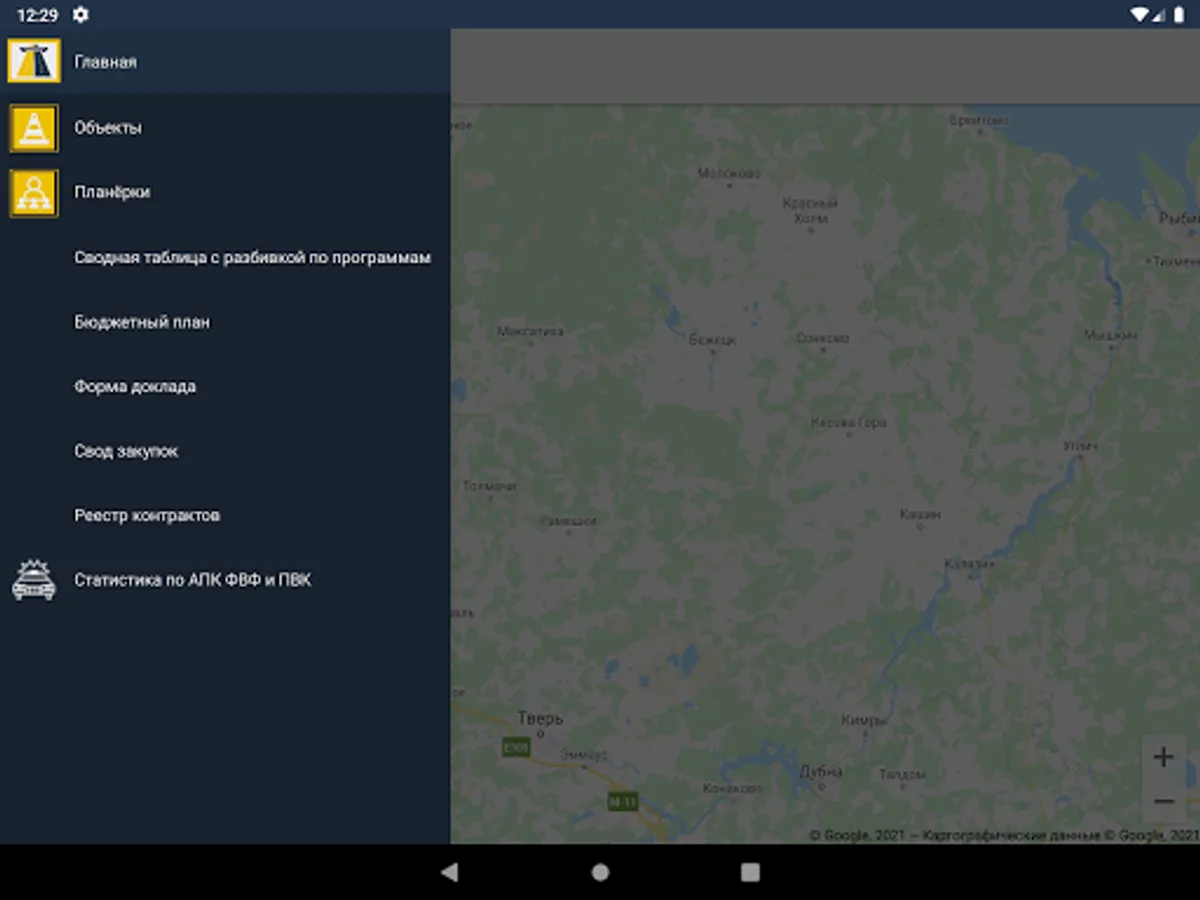 Reporting part of the application "Road construction management", including a map, briefings and other reports
