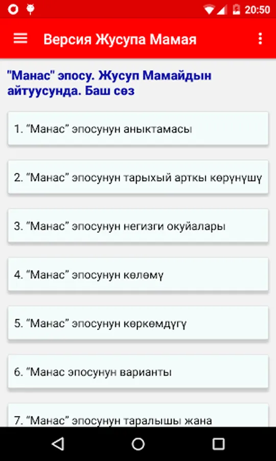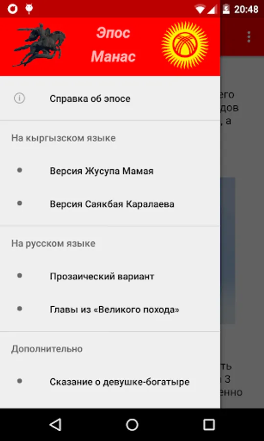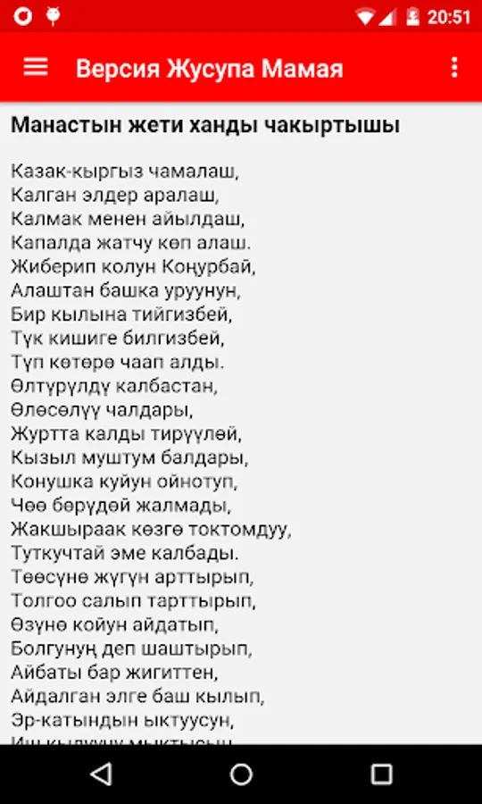 The program contains two versions of the epic in the Kyrgyz language: