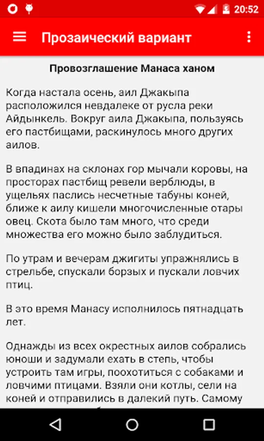 a) a prose version of the epic on the options Sagymbaya Orozbakov uulu and Sayakbai Karalaev;