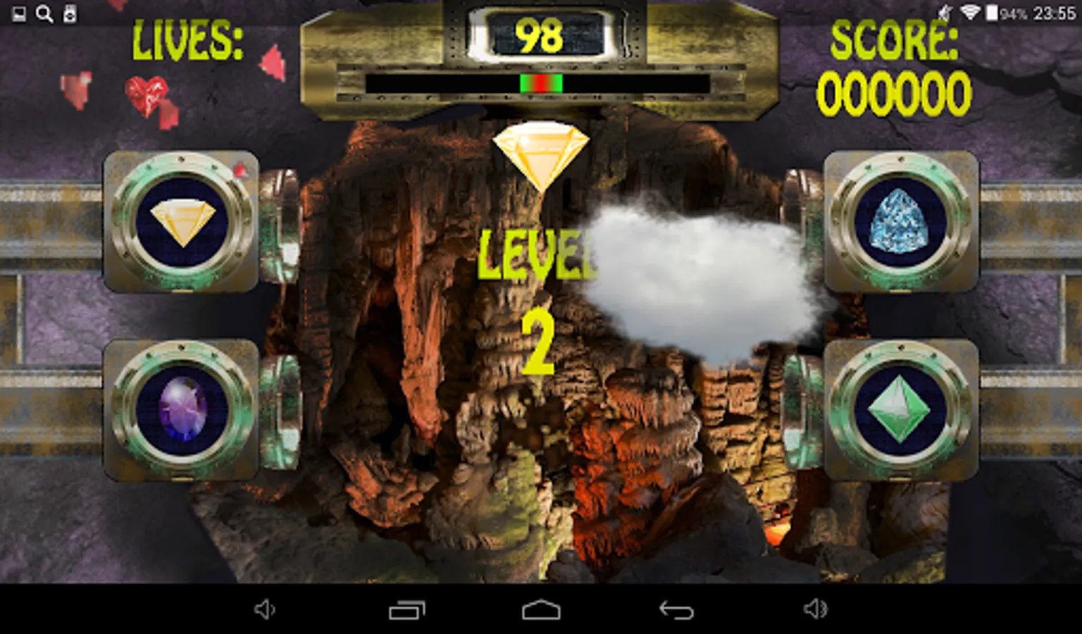 King of cave wants to sort his treasures, help him in this hard work and check your attentiveness and reaction speed. Become a real Lord of Jewels, take first place in the rating of the players, and open all achievements! Move jewels with your finger to the tube with appropriate label, but remember that not all the falling objects are needed. Some of them, if used, may speed up the game or steal points, if you place an object in any tube. You get 3 lives per level, live is lost, when mistake with jewel is made. Other factors will impact difficulty of the game to make it even more challenging. 100 subjects will drop at each level.