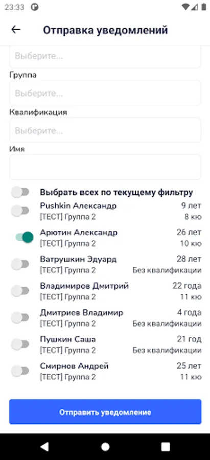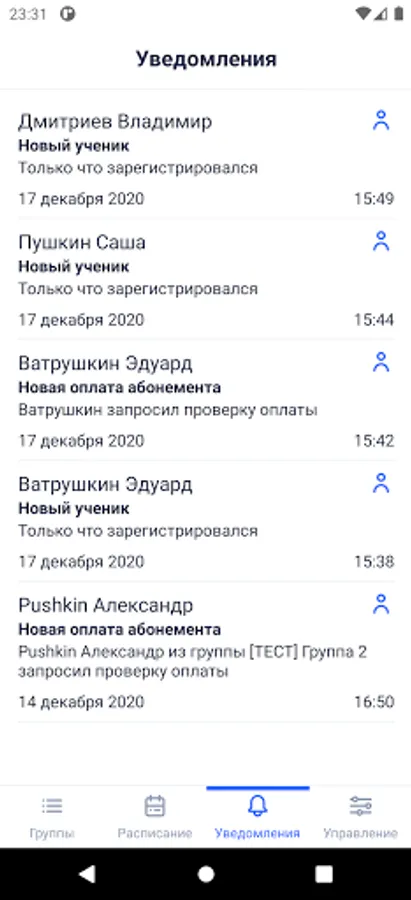 Control panel of the coaches of SC "Arcos"