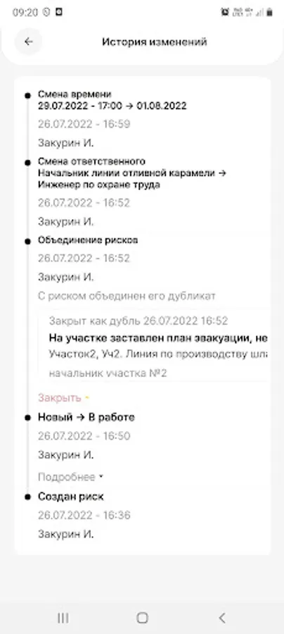 The application is designed to manage risks, tasks and ideas in production. The application allows you to fix tasks, take them to work and perform other actions. The entire history of changes for each task is also available in the application.