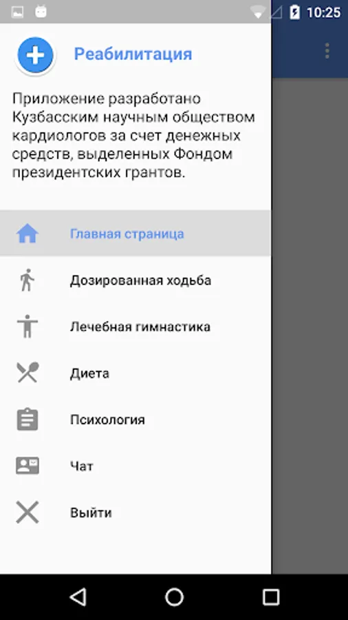 Application for the rehabilitation of patients with a cardiological profile. The application was developed by the Kuzbass Scientific Society of Cardiology at the expense of funds allocated by the Presidential Grants Fund.