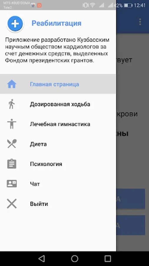 Application for the rehabilitation of patients who underwent heart surgery. The application was developed by the Kuzbass Scientific Society of Cardiology at the expense of funds allocated by the Presidential Grants Fund.