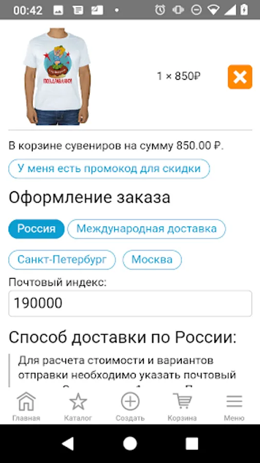 You can order the printing of your design on a selected souvenir directly from the application. Delivery throughout Russia, to points of issue or by courier to the door, as well as self-pickup in St. Petersburg. International shipping is also possible.