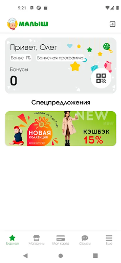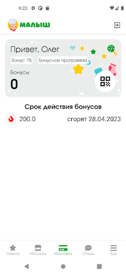Get additional bonuses for purchases in the stores of the "Malysh" network! Just register and start collecting points that you can use to pay up to 100% of the value of goods.