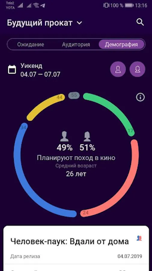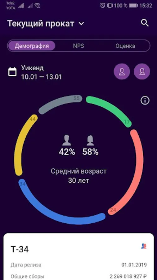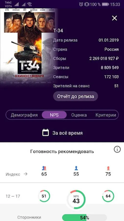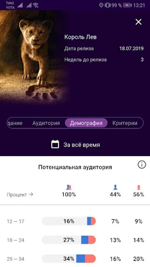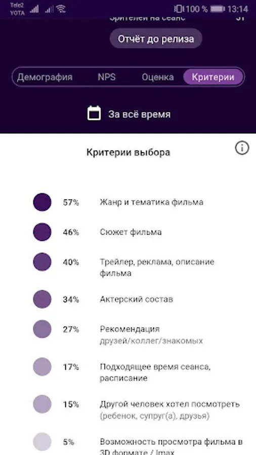 The Kinograditel is the first Russian audience tracker designed to give film industry players access to current data on the age and sex structure of cinema visitors on the basis of each weekend, the level of satisfaction with the film, the reasons for its choice. The project staff weekly interviews viewers in cinemas across the country, located in Moscow, St. Petersburg, Yekaterinburg, Novosibirsk and Krasnodar, the largest cities in theater attendance. Participation in the survey takes only a real cinema audience - the audience leaving the cinema after watching movies. The sample size is 1200-1500 movie goers over the weekend.
