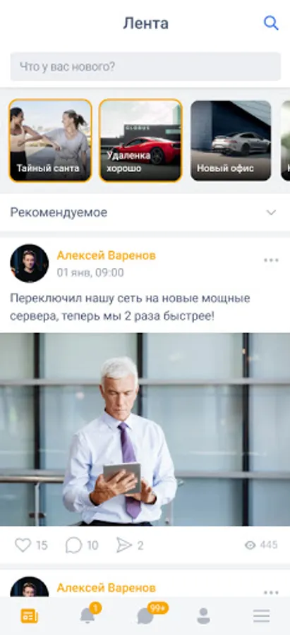 This is a corporate social network for collaboration within our large company with restaurants throughout Russia. With its help, employees can exchange achievements, life hacks, recognize each other, receive important information, generate and discuss ideas, participate in federal championships, competitions and activities, and simply give each other a good mood