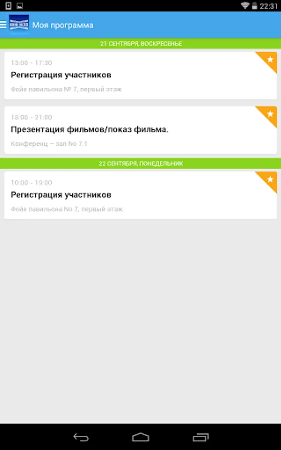 Optimize your time and visit only those shows and seminars that are really important to you. Add an event liked to "My Program", and the application will remind you of him.