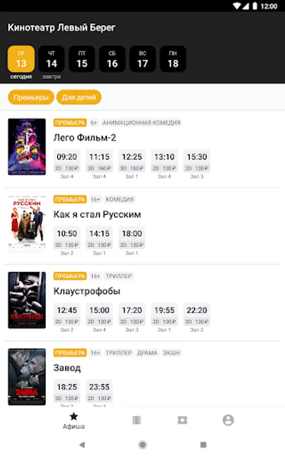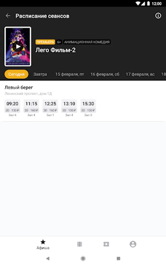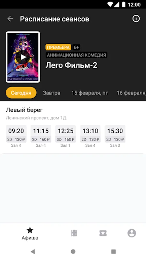 The mobile application of the cinema "Left Bank" will help you find a convenient session, learn about the news of film distribution and purchase movie tickets.