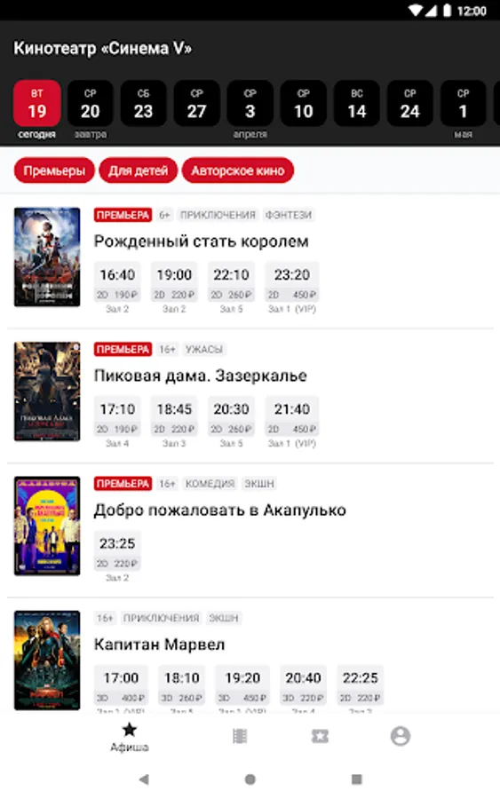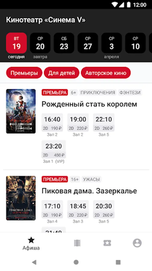 The five-hall cinema "Cinema-V" is not just a place where you can watch a movie and eat popcorn. Cinema-V is a qualitatively new and high level of leisure in Rybinsk, which is the final chord of the entire VIKONDA shopping and entertainment complex. Tired of looking for the main character among the scenery on the TV screen? Come to us! For its viewers, Cinema-V produced the largest screen in the region - the size of a five-story building. Watch the movie first on the 17-meter screen in the Premier Hall of Superior for 164 seats. Enjoy a VIP-rest in the hall with 43 seats with the opportunity to try delicious dishes from a special menu. Choose a comfortable session in one of three classic halls for 125, 125 and 157 seats. For those who want to rest from shopping or just have a good time waiting for a session - we have prepared a rest area with soft sofas. In the concession bar you will find selected popcorn - sweet, salty, with cheese, caramel, all kinds of drinks and other goodies. To give you the opportunity to improvise and emphasize your individuality, Cinema-V offers various combo sets, promotions and discounts. Do not miss the chance to take advantage of special offers! Follow us, subscribe to our official pages, go to the News and Promotions section of the cinema website. Cinema-V is a large and friendly team of professionals whose goal is to make watching movies something special. Impeccable level of service, friendliness of staff, reasonable prices and maximum responsiveness - this is what turns the Cinema-V into a truly family movie theater. We are proud to be doing and we will be happy to receive any feedback. If you watch movies - then in the cinema. If the cinema - in the "Cinema-V"!