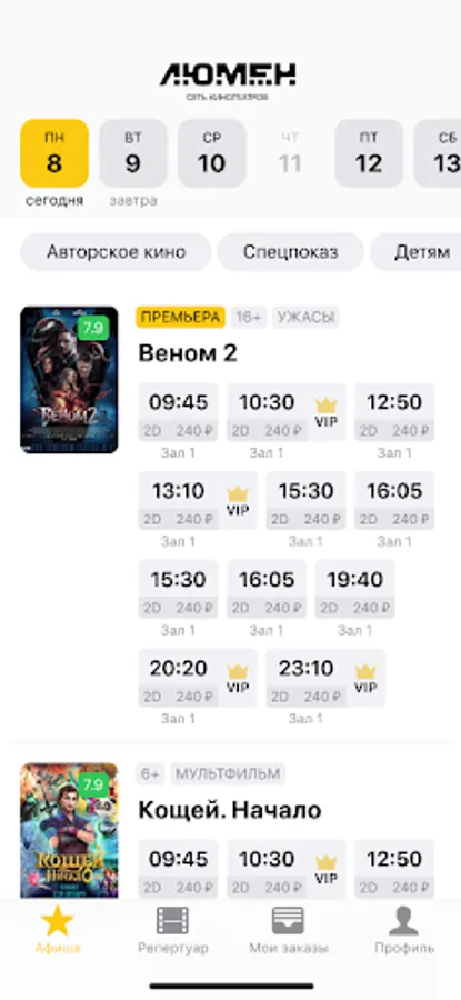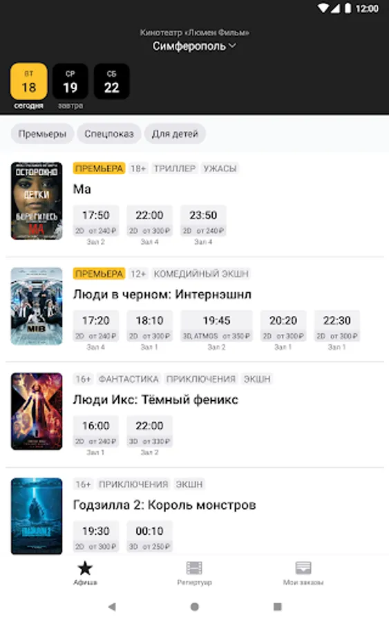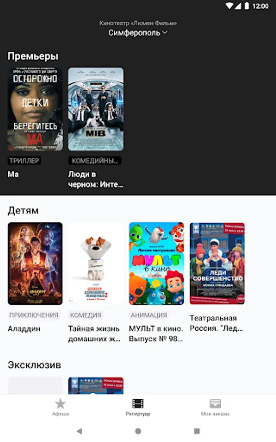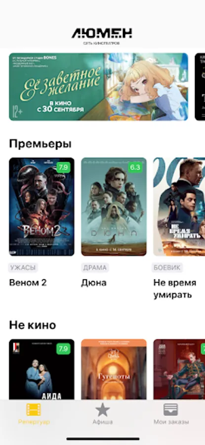 — Get acquainted with the current repertoire of cinemas with the help of a constantly updated poster.
