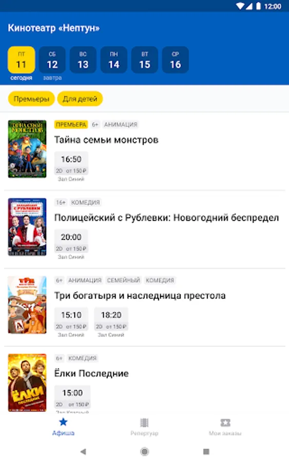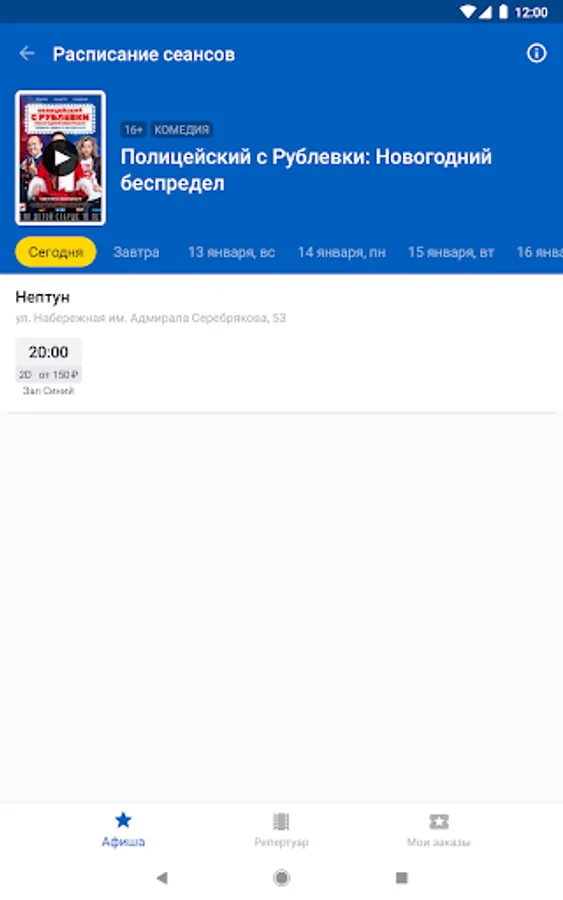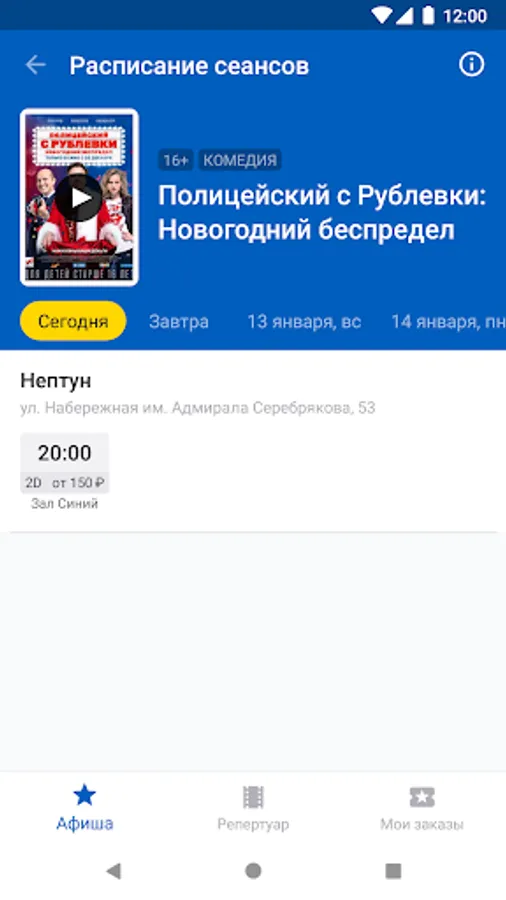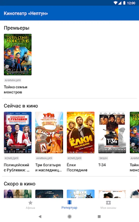 The mobile application of the cinema "Neptun" will help you to find a convenient session, learn about the news of film distribution and purchase movie tickets in the city of Novorossiysk.