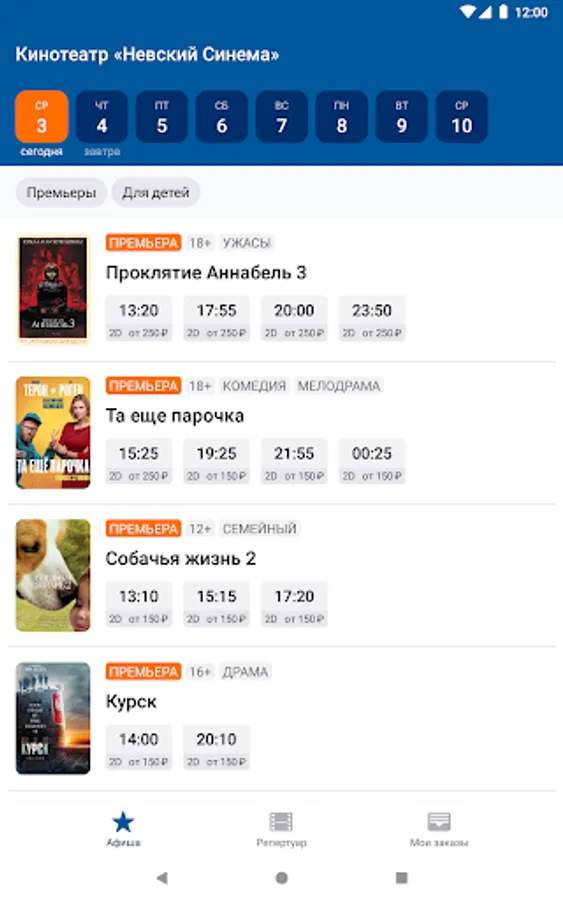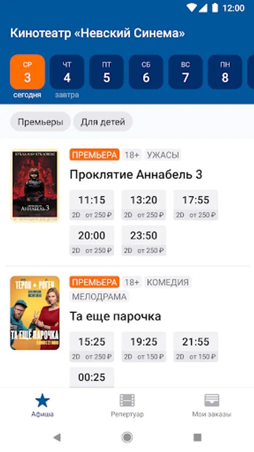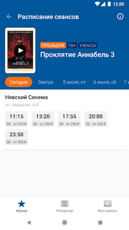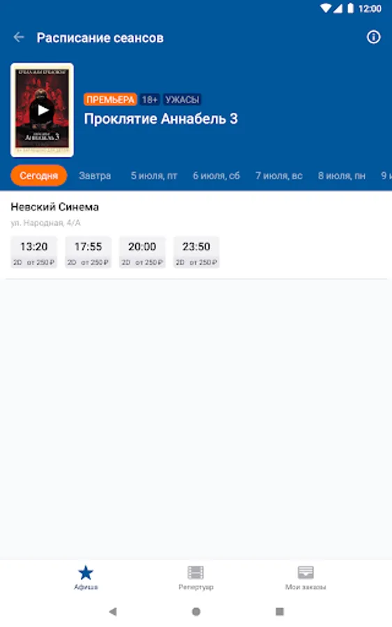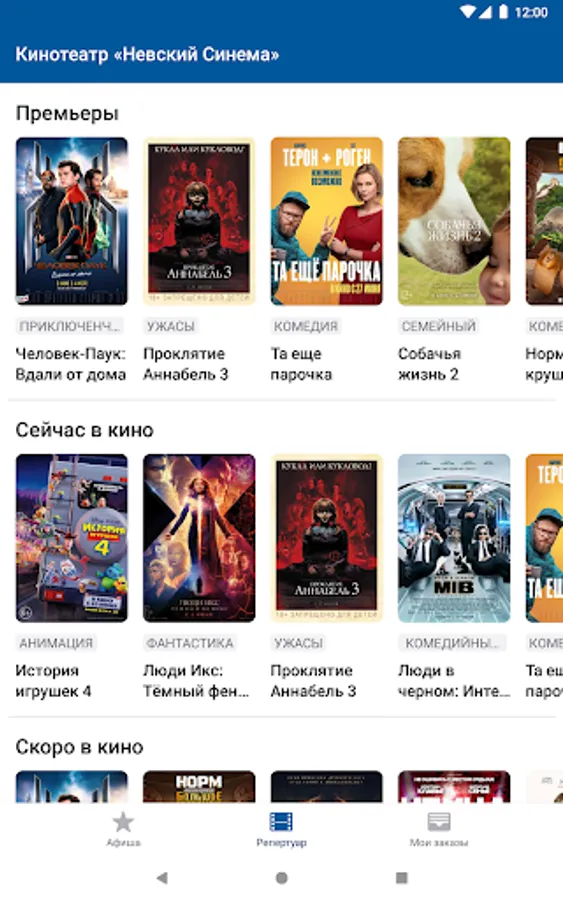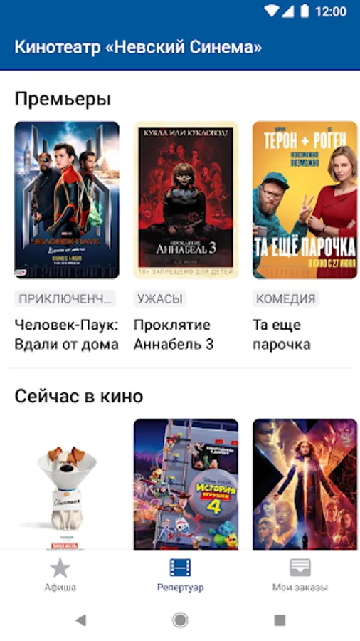 The mobile application of the cinema "Nevsky Cinema" will help you to choose a convenient session, learn about the news of the film distribution and buy tickets to the cinema.