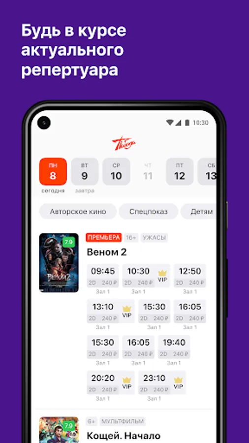 The cinema is constantly working to promote the best domestic and foreign films, using various forms of cultural and educational work aimed at the moral, aesthetic and patriotic education of the viewer.