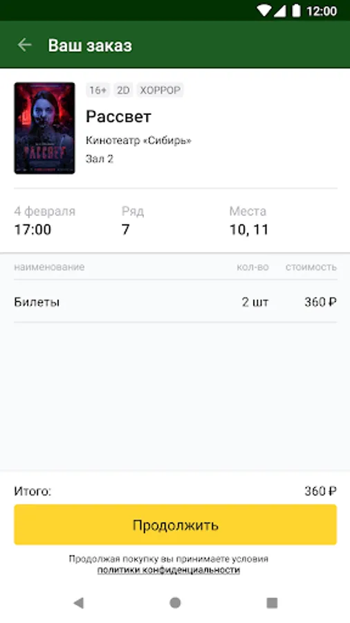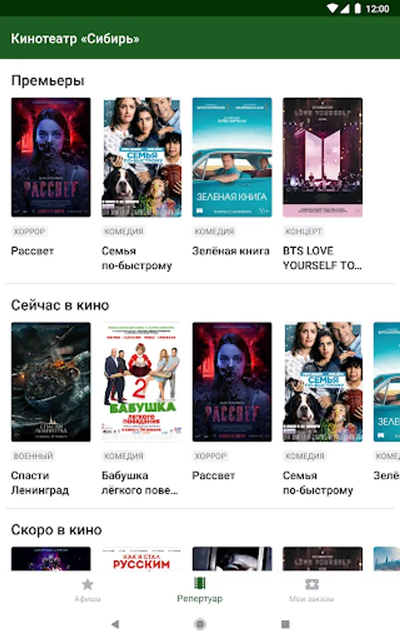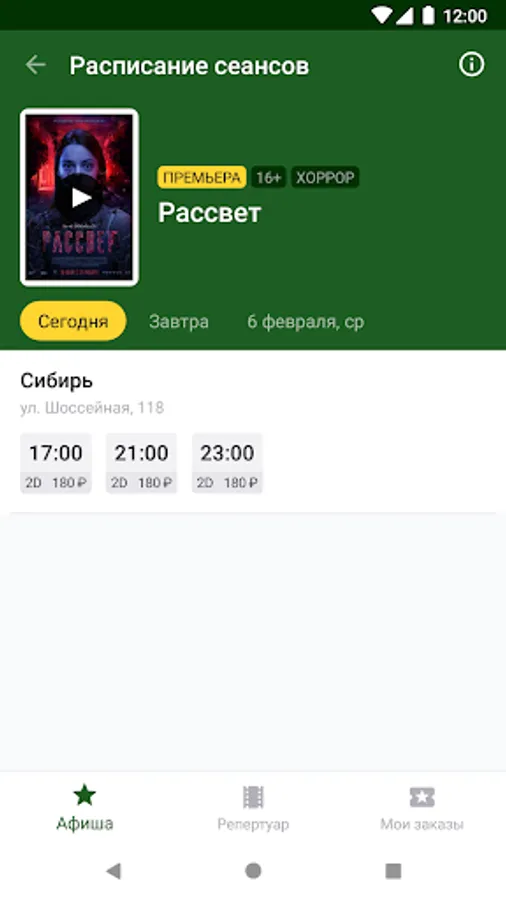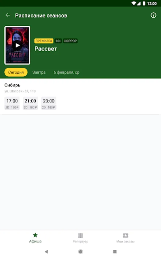 Mobile cinema Siberia app will help you choose a convenient session, learn about new box office and buy movie tickets. Cinema "Sibir" - the only cinema in the modern dvuhzalny Zavodoukovsk to 204 seats. Cinema is equipped with a digital display system, 3D movies, silvered screens, speakers DOLBY DIGITAL, which create a "presence effect", which allows guests to enjoy not only excellent images, but also high-quality sound. Waiting for you!