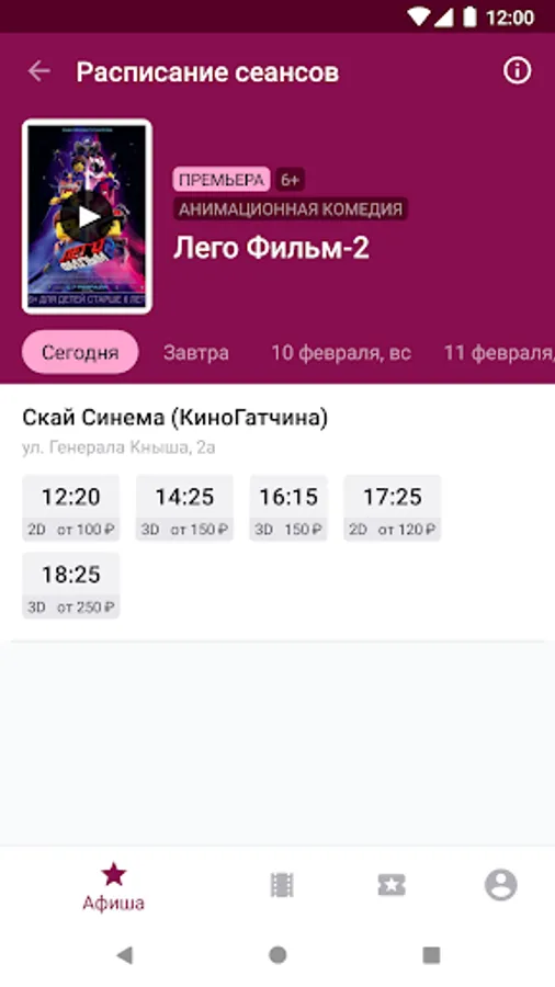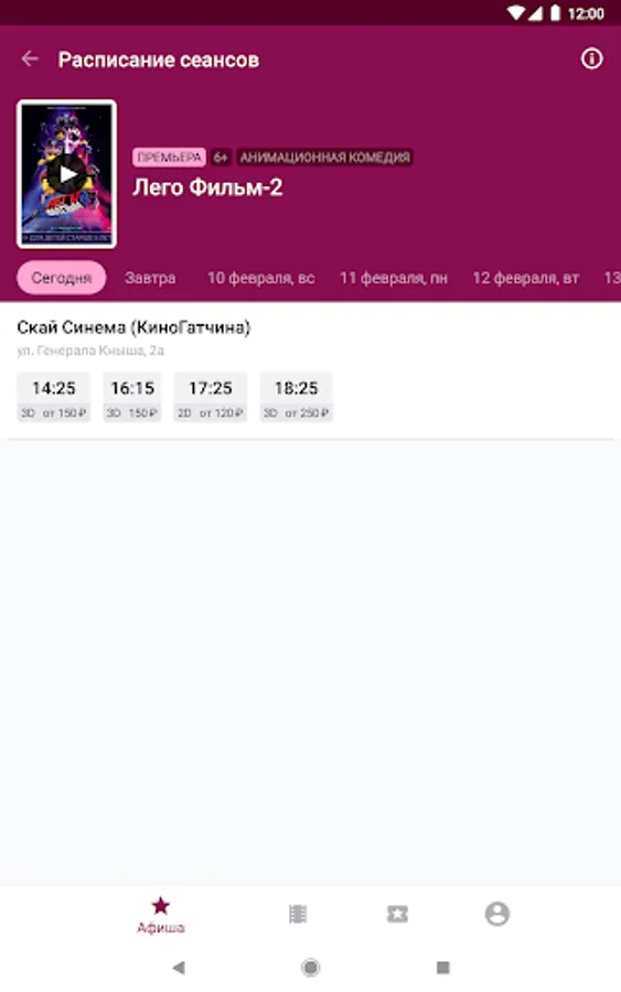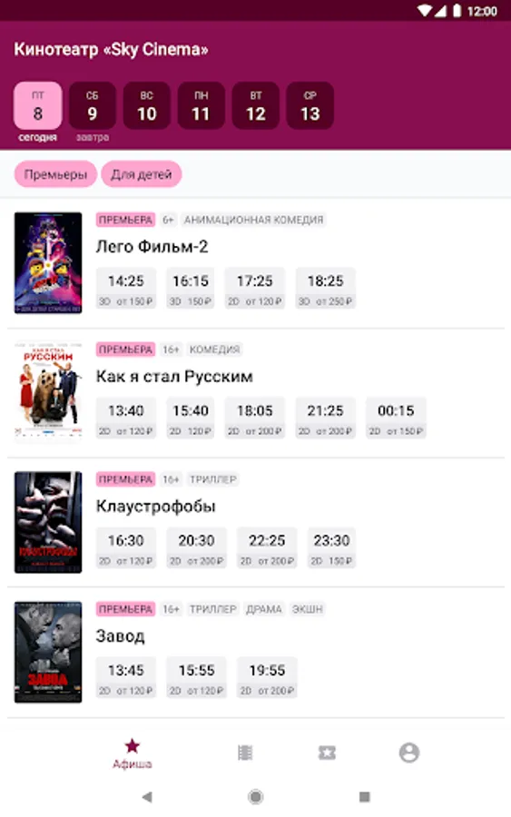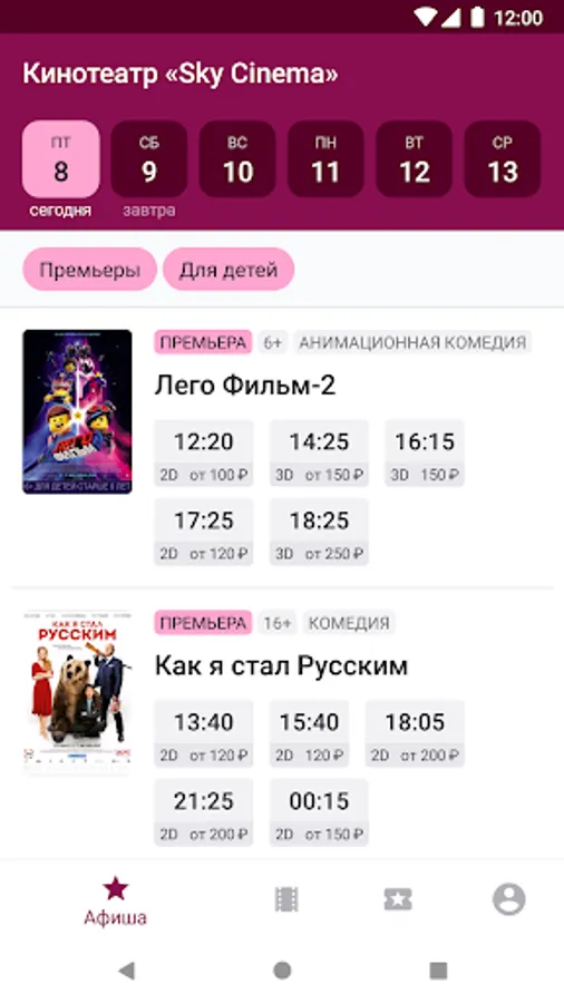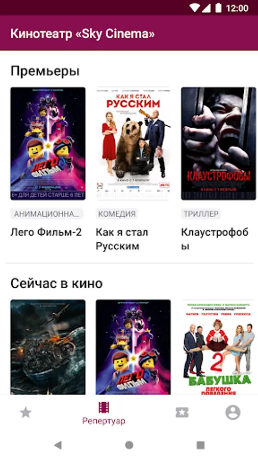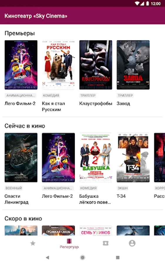 Mobile cinema "Sky Cinema" app helps you find easy session, learn about new box office and buy movie tickets. "Sky Cinema" - a 5 rooms, 2 of which are superior,